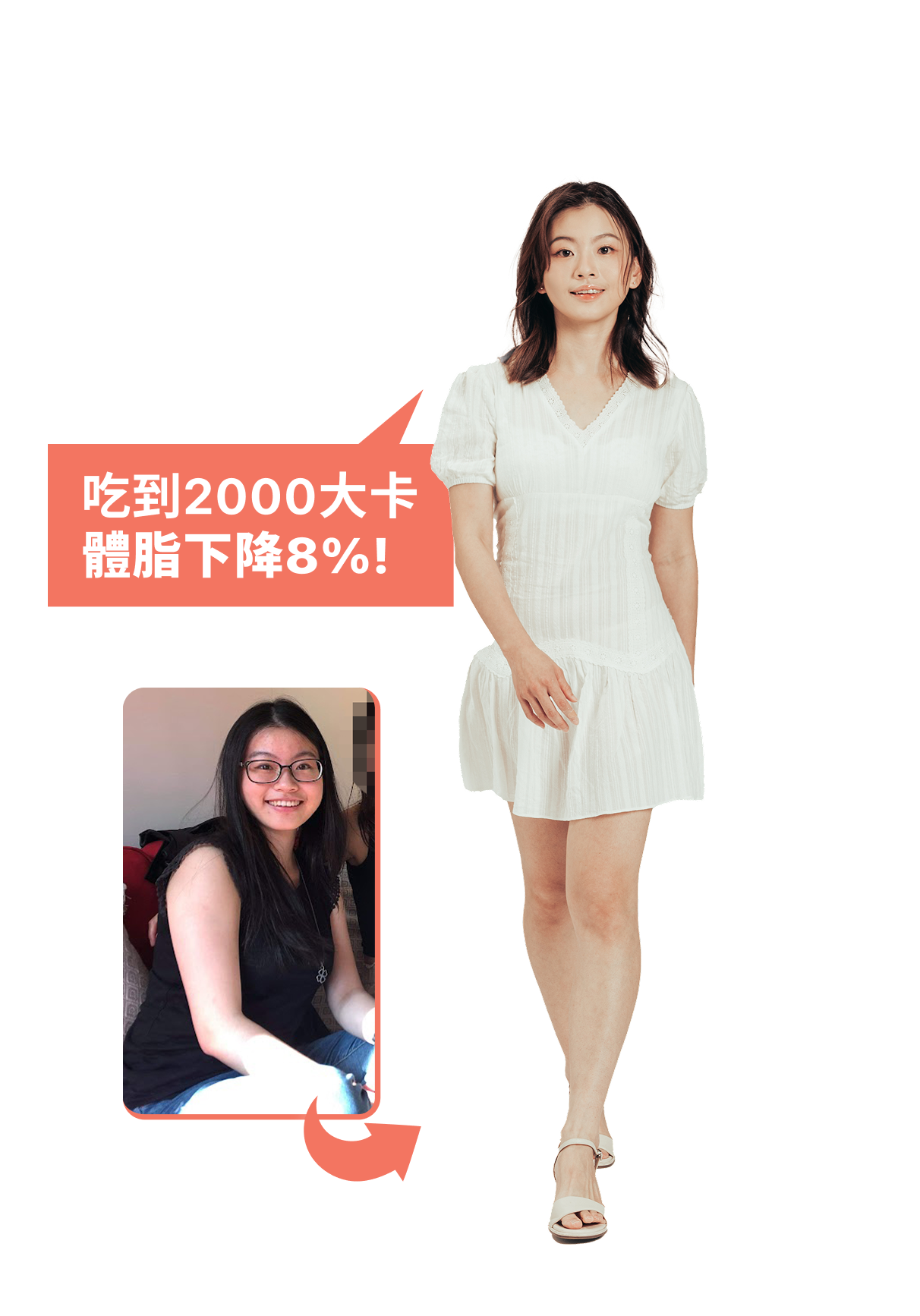 過去的我嘗試過很多減肥方法,包括代餐、少吃、岩盤浴、電波等方式但都沒有看見成效,加入課程後我跟著課程給的飲食和運動課表走,每天穩定可以吃到1700大卡,中間甚至還有家族 旅遊,我的體重下降了8公斤、腰圍減少20.2公分,沒有復胖!我覺得建立正確的觀念真的太重要了!