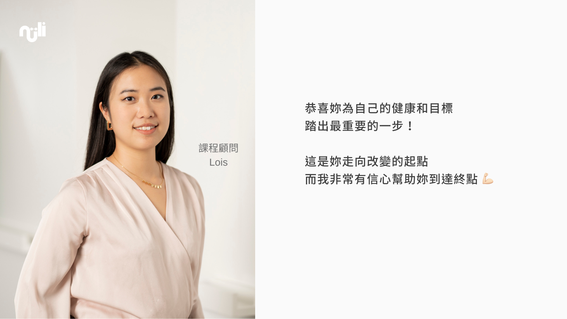 恭喜妳為自己的健康和目標踏出最重要的一步!