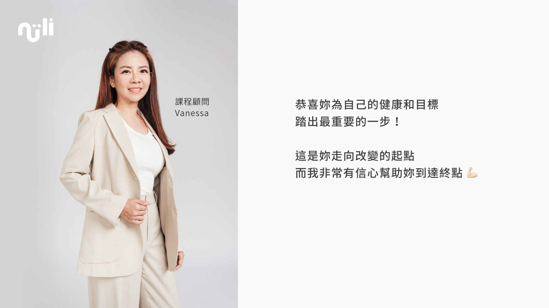 恭喜妳為自己的健康和目標踏出最重要的一步!